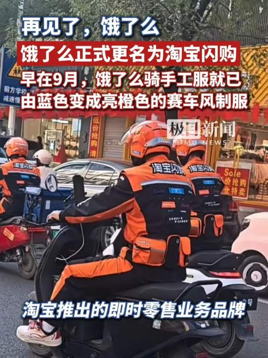 1 再见了,饿了么!12月5日上午,饿了么正式更名为淘宝闪购。早在9月,饿了么骑手工服就已由蓝色变成亮橙色的赛车风制服