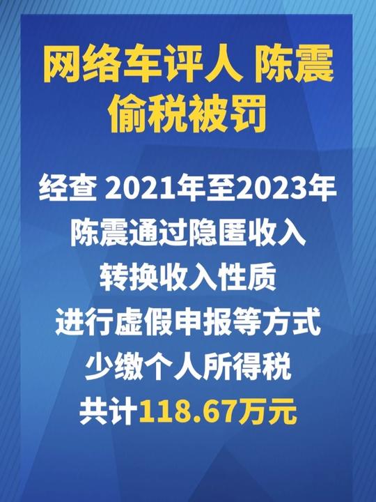 2 近期,国家税务总局北京市税务局第三稽查局依法查处网络车评人陈震偷税案件。