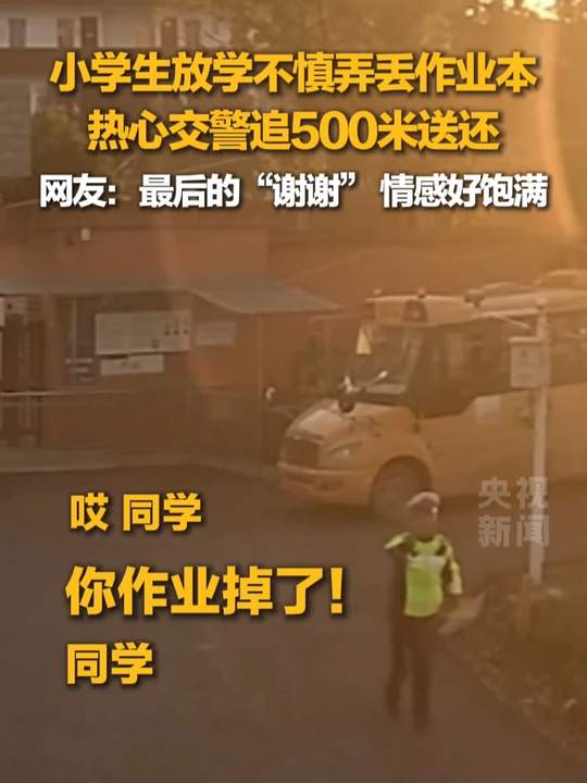 8 小学生放学不慎弄丢作业本,热心交警追500米送还。网友:最后这声“谢谢”,情感好饱满……@平安黄石