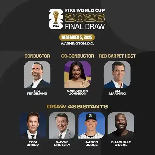 当地时间 12 月 5 日,2026 年美加墨世界杯决赛阶段抽签仪式在美国首都华盛顿举行。最终抽签结果如下:A 组:墨西哥、南非、韩国、欧洲附加赛 D 组胜者 B 组:加拿大、欧洲附加赛 A 组胜者、卡塔尔、瑞士 C 组:巴西、摩洛哥、海地、苏格兰 D 组:美国、巴拉圭、澳大利亚、欧洲附加赛 C 组胜者 E 组:德国、库拉索、科特迪瓦、厄瓜多尔 F 组:荷兰、日本、欧洲附加赛 B 组胜者、突尼斯 G 组:比利时、埃及、伊朗、新西兰 H 组:西班牙、佛得角、沙特阿拉伯、乌拉圭 I 组:法国、塞内加尔、洲际附加赛 2 组胜者、挪威 J 组:阿根廷、阿尔及利亚、奥地利、约旦 K 组:葡萄牙、洲际附加赛 1 组胜者、乌兹别克斯坦、哥伦比亚 L 组:英格兰、克罗地亚、加纳、巴拿马 本届世界杯首次扩军至 48 支球队,分为 A 至 L 共 12 个小组。东道主球队美国、加拿大和墨西哥以及世界排名前九的球队为种子队,其余球队根据世界排名依次分档。四支欧洲区附加赛球队和两支洲际附加赛球队自动分入第四档。 为保证参赛队伍分布均衡,本次抽签确保世界排名前四的西班牙、阿根廷、法国和英格兰队被分入不同的半决赛路径。此外,每个小组必有一支欧洲区球队,但不会超过两支,其他区球队不会在同一小组相遇。 美加墨世界杯将于 2026 年 6 月至 7 月在美国、加拿大、墨西哥的 16 座城市举行,将是首次有 48 支球队参赛的世界杯。