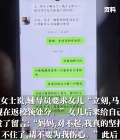 2025 年 11 月 18 日,来自陕西安康的许某某(化名)女士在网络发布求助信息,称女儿陈某某(化名)在西安培华学院汉语言文学专业就读,今年 10 月 15 日回家探望母亲时,因为未履行请假手续,被涉事辅导员冉某某(化名)要求立刻返校领处分。此后,陈某某在返校途中跳河轻生。 18 日,陈某某母亲许女士接受了红星新闻记者的采访。许女士透露,女儿 22 岁,今年已经大四,马上面临毕业。10 月 15 日,陈某某从西安返回安康的家中探望母亲,「她说要回来跟我说个事,但到最后也没说。」 红星新闻记者获得了事发当天,陈某某与老师冉某某的微信聊天记录。双方在早晨六点左右加上微信好友,陈某某留言:「(辅)导员您好,非常抱歉。因母亲生病今天无法参加招聘会。我目前正和家长在一起,情况他们也都了解,如果需要核实,我家人可以随时与您通话沟通。给您和学校工作添麻烦了,恳请谅解。」 冉某某随后问「谁允许你出了校门不请假」「谁允许你不返校的」等话语,并要求陈某某立即返校,「立刻,马上,现在返校来领处分,让你家长立马给我打电话。」 当天 10 时 32 分许,陈某某用微信发送了「你真的好讨厌」「我好不容易鼓起了勇气,你为什么要无情的打破」等话语, 冉某某在微信中表示:「你不请假私自外出?是我的问题?还是我说你哪句说错了?你可以讨厌我,但请你遵守学校的规章制度。把你的离校手续尽快发我。」 没有得到回复后,冉某某又在微信中留言:「有任何事情返校来找我,你可以讨厌我,但作为大四的学生你无故外出不请假我不该和你的家长沟通么? 你觉得我那(哪)句话说错了还是我冤枉你了。你是大四不是大一。有任何事情可以请假而不是私自跑出去。对不对?我没有不给你批假也没有不让你回去看你妈妈,你自己跑出去你的安全谁负责? 你加果不喜欢我,不想和我沟通,可以给你更换辅导员。你可以继续和冯老师沟通都可以。有什么问题我们都可以协商解决。你得和我联系。我们也担心你的安全。」 许女士接受红星新闻记者采访时称,在收到女儿消息之后,她立即给冉某某拨打了电话,解释了女儿回家的原因。 同时,陈某某给母亲也发送了最后的留言「妈妈,对不起,我真的坚持不住了,请不要为我伤心,你可以怨恨咒骂我,但请不要累及自身,照顾好自己的身体。再见,愿我的母亲我很好的家人,余生平安喜乐,事事顺遂。」 此后,许女士再也无法联系上女儿。21 天后,陈某某的遗体在当地河中发现。许女士透露,事发后他们曾就此事和西安培华学院校方沟通,「对方认为陈某某轻生与校方不相干,但愿意就此事支付 5 万元的人道主义费用」,这让家属难以接受。 当天,记者致电涉事辅导员冉某某,对方表示:「包括学校的领导、公安也都来问过话,你们有任何问题问学校的校领导就可以,因为这个事情现在我不接手,我这边我也没有办法再多说什么。」 随后,记者致电西安培华学院处理此事的校方负责人蓝某,但电话一直无人接听。 红星新闻记者从安康市旬阳当地警方获悉,陈某某死亡系自杀,目前已排除刑事案件。红星新闻了解到,事发后校方曾派人专程前往陈某某家中沟通后续处理事宜。因为赔偿问题双方未能达成一致。22 岁女生轻生,生前与辅导员有争执